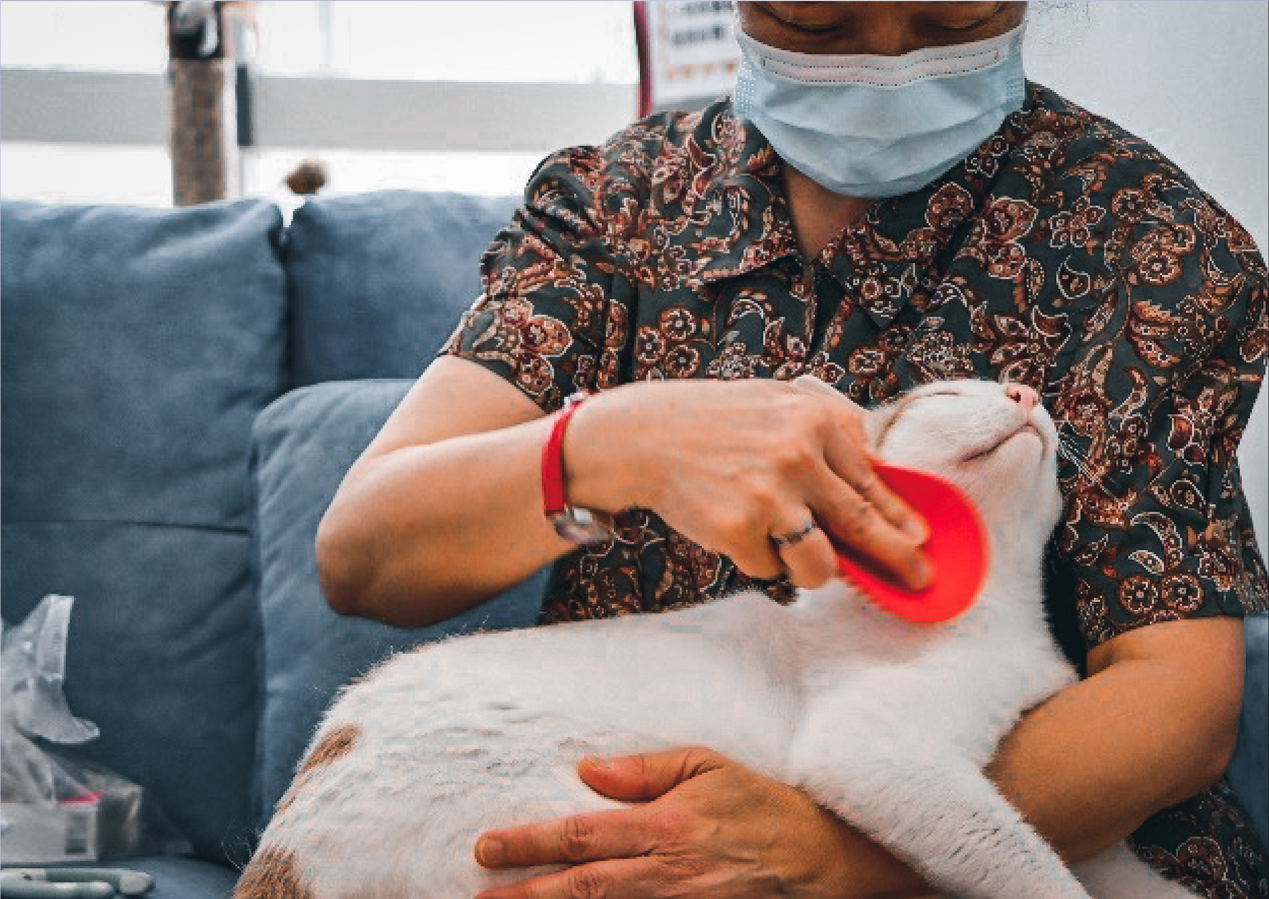 過去10年左右,人們已經開始讓動物進入醫院、護老院、學校、大學、監獄以及康復中心等場所幫助人們減壓、康復和療養。善導會朗澄坊由2017年開始有動物工作員,並以「貓義工」的介入手法,幫助服務使用者舒緩情緒。以淑琴為例,和貓貓接觸令她開始重拾自信,並能夠更堅強地應對各種困難。從貓貓的親密互動之中,淑琴感覺自己的用功及堅持得到認可,使她能夠有力量對抗內心的恐懼。義工的身份也令她多接觸不同的訪客,增強表達能力。